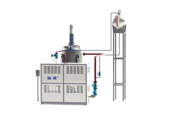 In the control system, thermal oil is delivered by a gear pump into the entire system. When the set magnetic flap level controller reaches the specified level, the gear pump automatically stops. At this point, the circulation pump and electric heater are started to begin heating. When the outlet oil temperature reaches the set value, it enters the user’s system for circulation. The oil, after being used by the equipment, re-enters the device for heating again. This cycle repeats continuously, representing the working state of the thermal oil.
